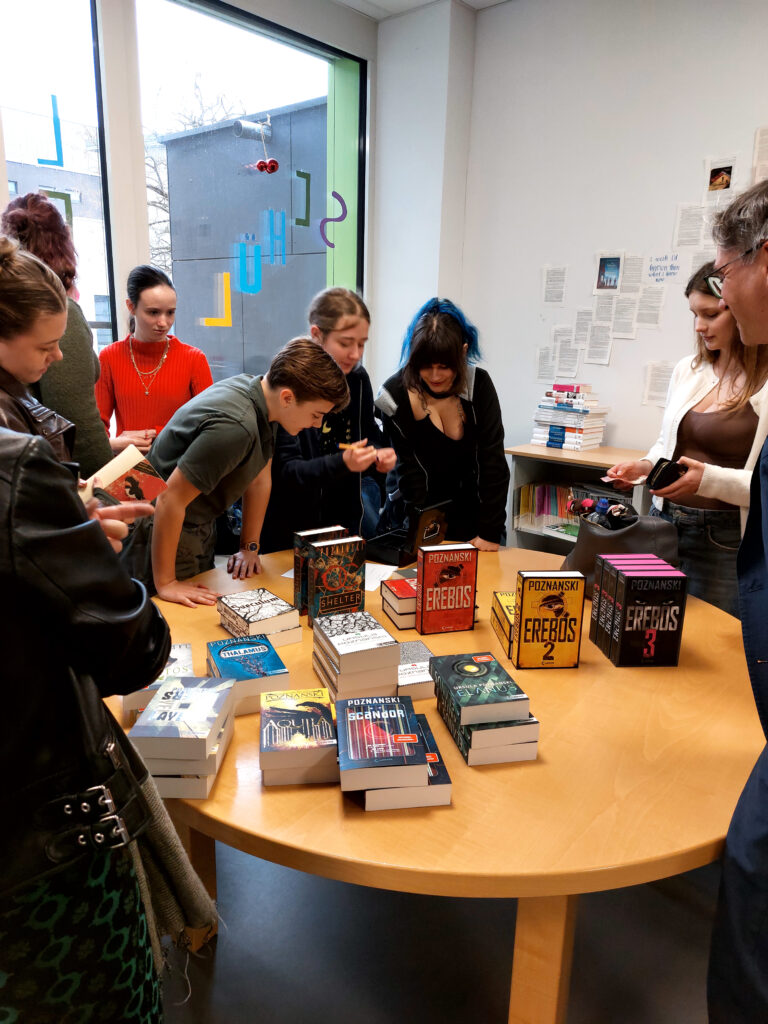 Im Anschluss stellte sich die Schriftstellerin den Fragen der Anwesenden. Sie gab Einblicke in ihr Schaffen, ihre Motivation und ihre Arbeit. Diese beschreibt sie als kreativen Beruf, den sie gern ausübt, der aber dennoch tatsächlich auch Broterwerb ist. Sie kam mit den Anwesenden bei der Signierstunde ins Gespräch und so konnte sie auch Schülerinnen und Schülern, die in ihrer Freizeit schreiben, wertvolle Einblicke und Tipps geben.