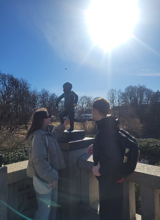 Norwegen ist bekannt für Schnee, Fisch und die klassischen nordischen Holzhäuser, aber dass hinter Norwegen noch so viel mehr steckt, war uns am Anfang unserer Reise noch nicht klar. Vor allem ist uns Norwegen in Sachen Schulsystem weitaus fortschrittlicher. Die Schüler arbeiten meist nur mit Laptop und was uns besonders erstaunt hat, war die freundschaftliche Beziehung zwischen den Schülern und den Lehrern, die sich ausschließlich beim Vornamen ansprachen. In vielen Klassen war es Tradition, jeden Freitag Kuchen zu essen, den ein Schüler für die ganze Klasse und den Lehrer mitbrachte. Jedoch spiegelte sich die lockere Einstellung der Norweger nicht nur in der Schule wieder, sondern auch in der Hauptstadt Oslo. Schon auf den ersten Blick bemerkten wir, wie ruhig und entspannt dort alles war. Natürlich ist die eher moderne Architektur in Oslo nicht mit der von bayrischen Altstädten zu vergleichen, aber dennoch haben wir Akerhus (Die Festung Oslos) und das Opernhaus (Bild 1) bewundert. In unseren Augen war der öffentliche Nahverkehr herausragend, sodass es keine Probleme gab, von einem Stadtende zum anderen zu kommen, vor allem, wenn man noch bedenkt, dass wirklich jeder Englisch sprechen konnte und sehr hilfsbereit war. Außerdem haben sehr viele Norweger in der dortigen Region einen sehr sportlichen Lebensstil. Fußball und Eishockey sind weit verbreitet, aber auch der mehrmals wöchentliche Fitnessstudiobesuch und das Laufen sind sehr beliebt. Dies konnten wir am dauerhaften Vorbeijoggen anderer Leute sehen, egal wann und wo wir waren. Auch hatten wir die Möglichkeit zwei Sportevents zu besuchen. Einmal ein Eishockeyspiel von Valentinas Gastschwester und ein andermal ein Fußballspiel des örtlichen Zweitligisten Stabaek IF. Wie viele andere Familien in Norwegen hatte auch die Familie eines Freundes meines Gastbruders ein Ferienhaus in den ca.3 h nordwestlich von Oslo liegenden Bergen, wo sie mehrmals im Monat über das Wochenende hinfahren. So hatte auch unsere Freundesgruppe die Möglichkeit ein Wochenende dort zu verbringen und die atemberaubende, in weiß gebettete Berglandschaft zu bewundern (Bild 3). Wir waren Wandern (Bild 4), joggen und haben auch viele Saunagänge unternommen. Die Abende haben wir mit gutem Essen, Gemeinschaftsspielen und Musik ausklingen lassen. Alles in allem hat der vierwöchige Aufenthalt in Norwegen uns nicht nur Fortschritte in Englisch und Norwegisch, sondern auch unvergessliche Erinnerungen und tolle, neue Freunde beschert.